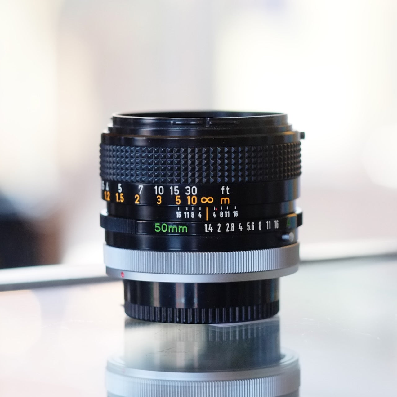 The Canon FD 50mm f1.4 is a fast standard lens for Canon FD mount cameras. Will mount and focus, some internal dust, light edge hazing.