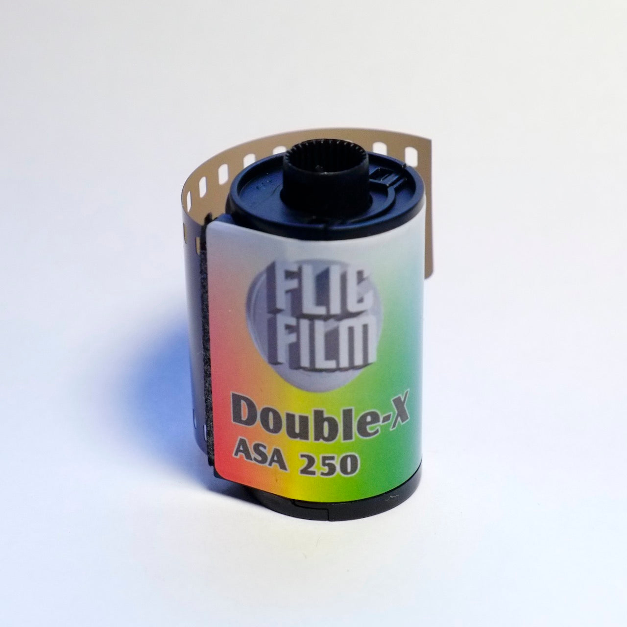 Kodak Double X is a classic black and white film that's usually only available in long reels for motion picture cameras- great if you're making a movie, not so great if you're just trying to take some pictures. Alberta's Flic Film repackages Kodak Double-X into reusable 35mm cassettes for use in almost any 35mm camera (as long as you can set your own ISO: the cassette is not DX coded)