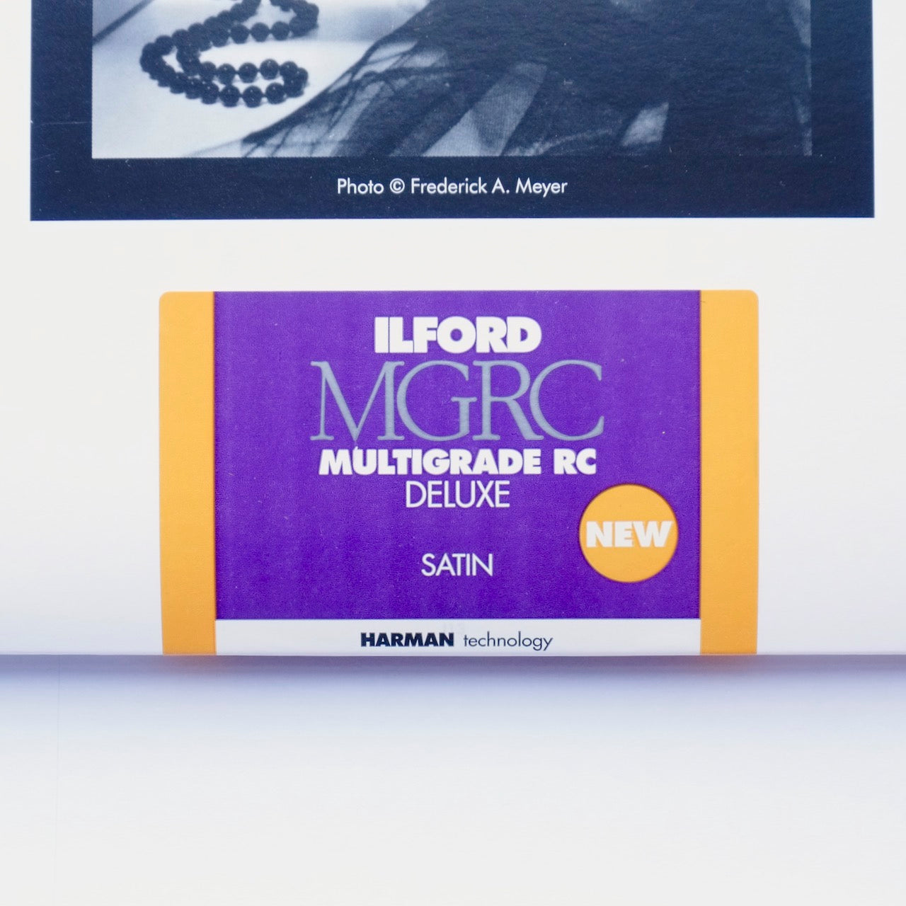 Ilford’s 5th generation Multigrade RC Deluxe Satin paper for traditional optical printing. Choose package size in the drop-down below.