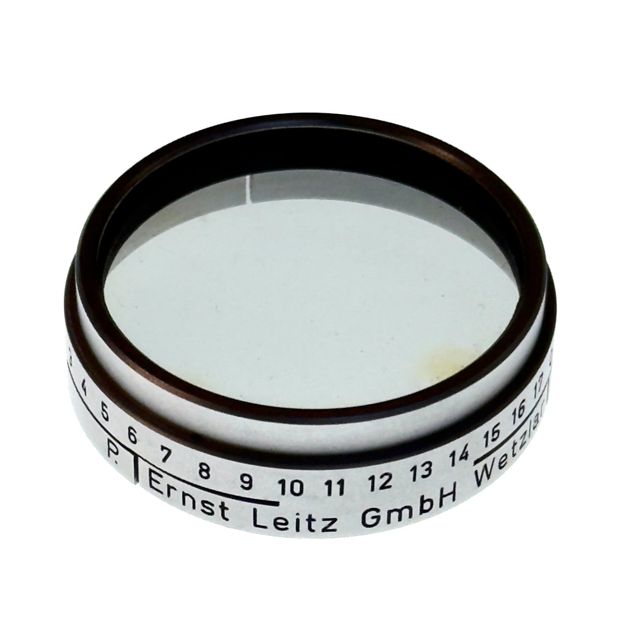 Leitz POOEL polarizing filter for A36 slip-on mount. Fits early thread-mount Elmar, Summar & other lenses. There's a small area of discolouration in the polarizing film (visible in the image at about 4 o'clock) but for a POOEL, it's not half bad. Light cosmetic wear otherwise. Includes original box.