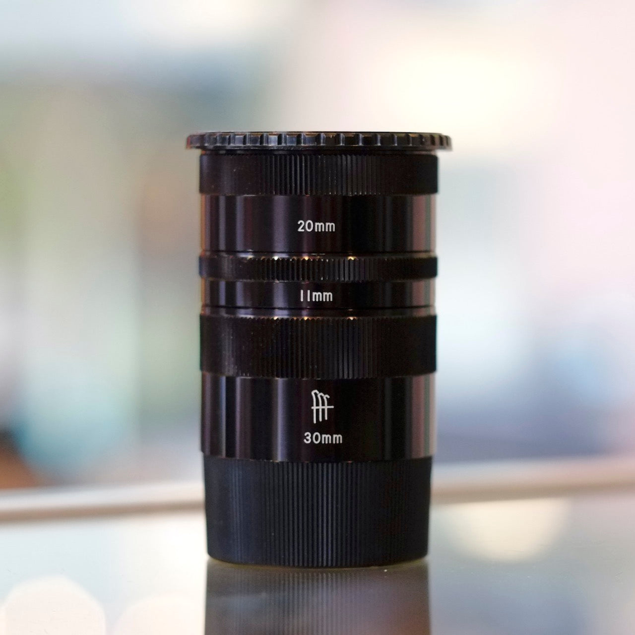 This extension tube set provides up to 61mm of extension in 11mm, 20mm, and 30mm segments. Auto-diaphragm coupling, too! In excellent condition.