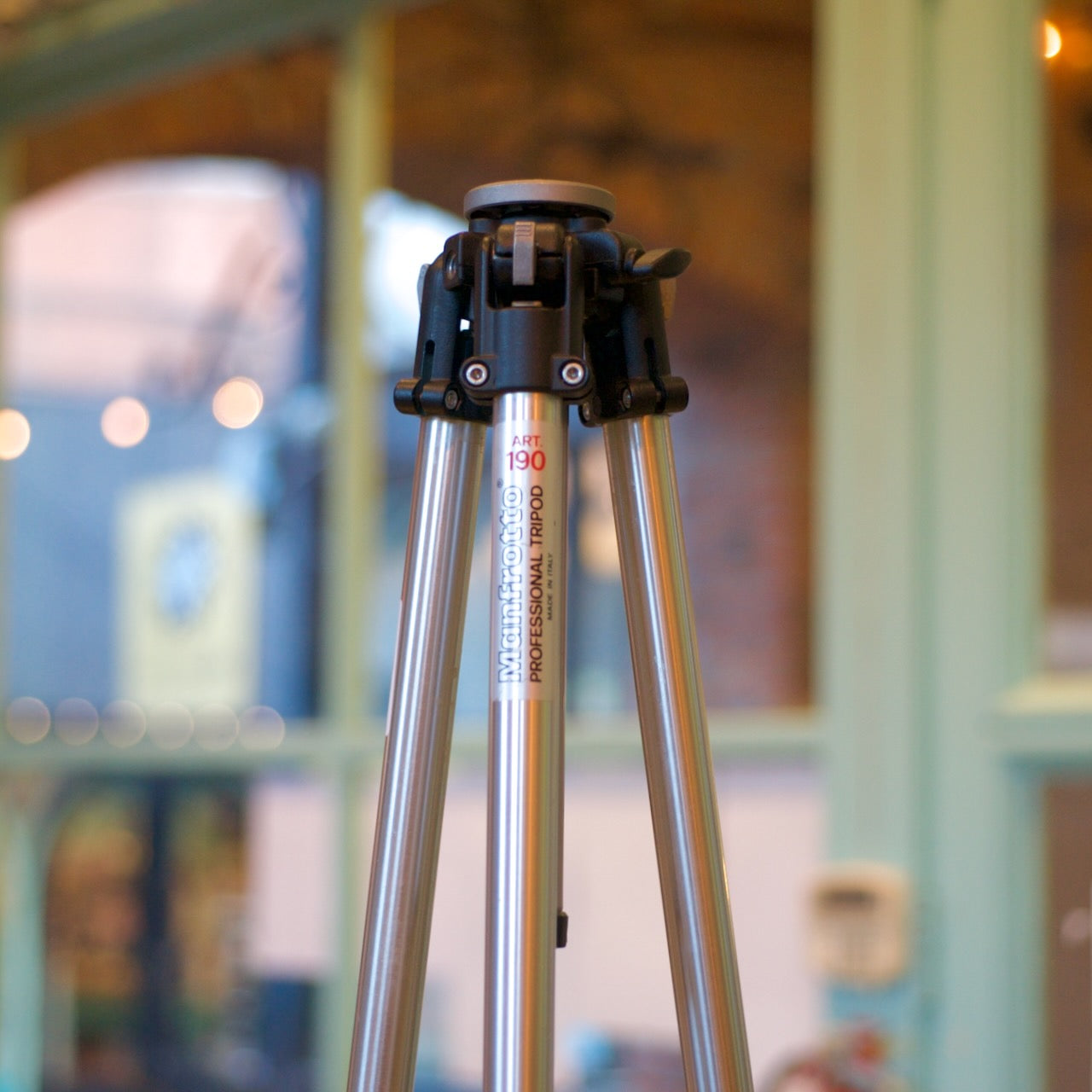 The 190 is a well made tripod with easy-to-use flip-lock legs, repairable hardware, and a sturdy, classic design. Extends to about 5 feet without centre column. Accepts any head with a standard 3/8" thread. Light cosmetic wear.
