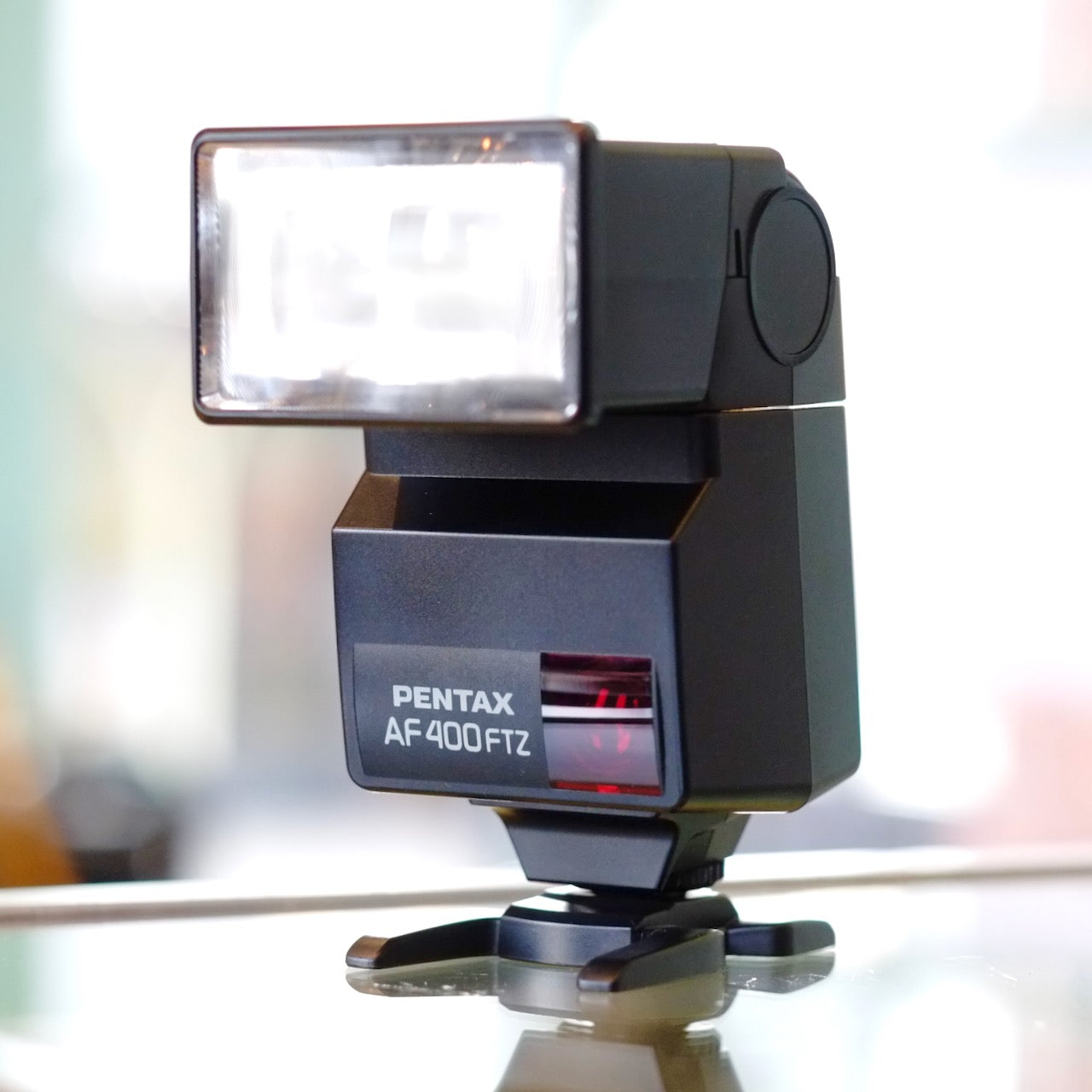 The Pentax AF400FTZ is a big flash for Pentax film SLR cameras, including the 67II. It can be used in either TTL or manual mode, and features a tilt/swivel/zoom head. In excellent condition, with softcase.