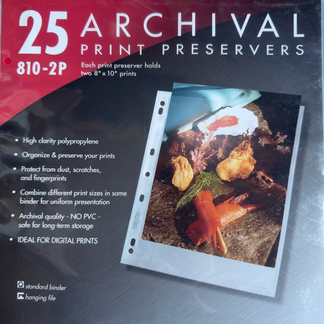 These Printfile 810-2P archival sheets hold two 8x10 prints. Fits into any standard 3 ring binder.