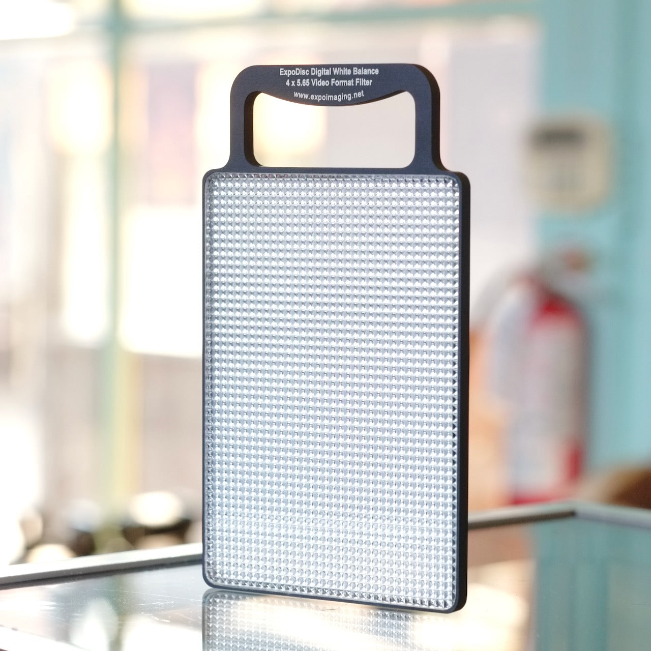 This particular Expodisc is not a disc- it's a big 4x5.65" slab designed to slip into matteboxes- but it works the same as the classic. Basically, it's a specialized flat diffuser designed to facilitate setting custom white balance. Rather than hauling around a gray card, or trying to find a plain white surface, or hoping that your camera guesses correctly, you can toss this in front of your lens and lock in an accurate custom white balance in seconds. This is a hard to find, discontinued variant of the Expodisc, in a rugged aluminum housing that's designed for professional use.